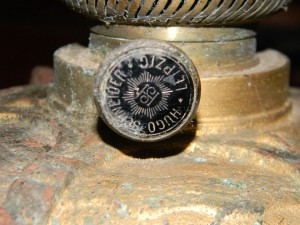 ..дрібненька річ з надписом “Hugo Schneider” зі зламанною віссю – то деталь керосинової лампи, ключика. Колись давно в побуті широко використовували подібні освітлювальні прилади, де в скляній колбі горів фітиль насичений керосином чи олією, що наливали в підставку лампи.